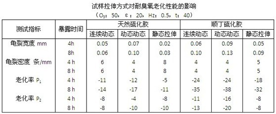 橡膠試樣的拉伸可分為靜態(tài)拉伸和動態(tài)拉伸。動態(tài)拉伸又有兩種方式,即連續(xù)的動態(tài)拉伸和間斷的動態(tài)拉伸。臭氧老化試驗(yàn)箱GB/T13642-1992標(biāo)準(zhǔn)為簡便敘述和區(qū)分,將國際標(biāo)準(zhǔn)規(guī)定的連續(xù)動態(tài)方式簡稱為A式,將間斷動態(tài)拉伸方式簡稱為B式,其中又將它們劃分為a法和b法兩種暴露方法。試驗(yàn)拉伸方式不同,試驗(yàn)結(jié)果是不一樣的,下表給出了不同的拉伸方式對試樣耐臭氧老化性能影響的試驗(yàn)結(jié)果。從表中可見,在相同的暴露時間下,試樣在間斷動態(tài)拉伸下試驗(yàn)比連續(xù)動態(tài)拉伸下試驗(yàn)的臭氧龜裂較嚴(yán)重,拉伸強(qiáng)度和扯斷伸長率也下降較大,而連續(xù)動態(tài)拉伸的試樣又比靜態(tài)拉伸的試樣臭氧老化較嚴(yán)重。可見,動態(tài)拉伸試驗(yàn)法能較快獲得臭氧老化試驗(yàn)箱做老化試驗(yàn)的結(jié)果。但試驗(yàn)選用哪種方式和方法,應(yīng)根據(jù)實(shí)際使用情況和試驗(yàn)要求來確定。