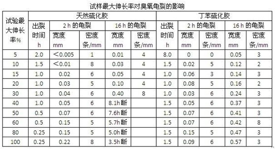 為了模擬橡膠制品的應(yīng)用條件,試樣進(jìn)行動(dòng)態(tài)拉伸時(shí)其最大伸長率根據(jù)制品實(shí)際使用狀態(tài)來選取。據(jù)調(diào)查,大部分橡膠制品在實(shí)際使用受到應(yīng)力應(yīng)變作用時(shí)其變形率都不超過30%,除特種用途外,一般都在5~20%的變形率。試樣不同的伸長率,臭氧老化的結(jié)果是不同的。下表示出了兩種硫化膠試樣最大伸長率對臭氧龜裂影響的老化試驗(yàn)結(jié)果,從表中可見,試樣在動(dòng)態(tài)拉伸時(shí)的最大伸長率對臭氧龜裂有很大影響,若伸長率越大,則臭氧龜裂越嚴(yán)重,龜裂發(fā)展的速度也越快。但裂紋出現(xiàn)時(shí)間對于丁苯膠則有些不同,即其伸長率為15~30%的試樣出裂時(shí)間早些。這些都可能與試樣受應(yīng)力活化、拉伸取向、機(jī)械疲勞等諸因素有關(guān)。以上說明不同的伸長率對不同試樣的試驗(yàn)結(jié)果是不相同的,所以最好是選用符合或接近橡膠制品在實(shí)際使用時(shí)的最大伸長率進(jìn)行試驗(yàn),一般可在5~30%間選用,但不宜小于5%或小于試樣的永久變形值,不然,試橛難于產(chǎn)生臭氧龜裂,得不到試驗(yàn)結(jié)果。如果采用的伸長率過大或超過實(shí)際使用條件時(shí),則有可能由發(fā)生的機(jī)械疲勞的龜裂取代臭氧龜裂,導(dǎo)致不客觀的試驗(yàn)結(jié)果。因此,臭氧老化試驗(yàn)箱GB/T13642-1992標(biāo)準(zhǔn)建議試樣動(dòng)態(tài)的最大伸長率采用1%為主的規(guī)定,向ISO靠攏。
